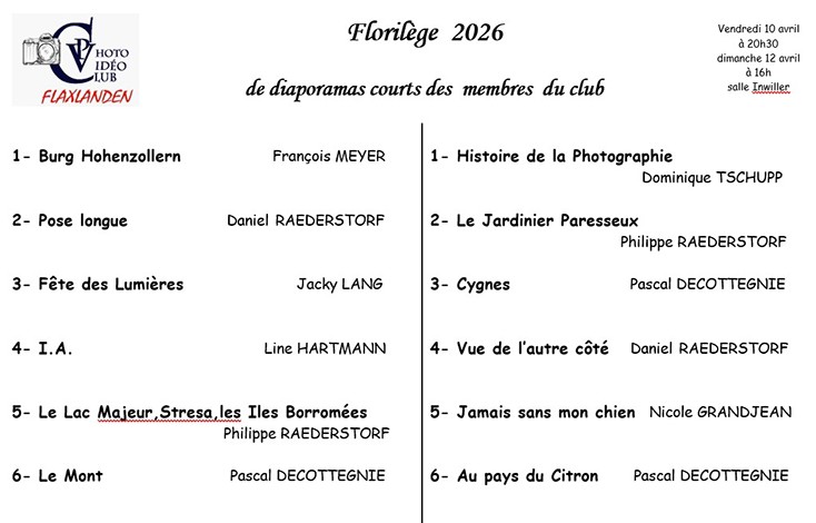 - Une projection FlorilègeAvec l’arrivée des beaux jours, la fin de saison des projections approche. Et avec la fin de saison des projections,… Lire la suite : Une projection Florilège